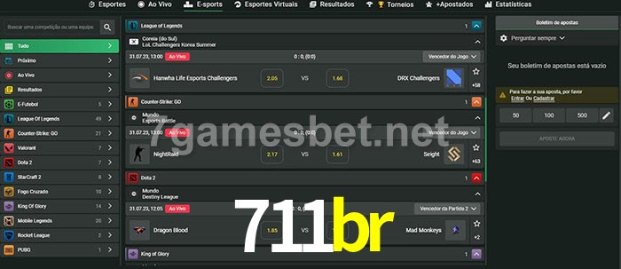 O 711br oferece uma grande seleção de opções de apostas em e-sports com probabilidades competitivas